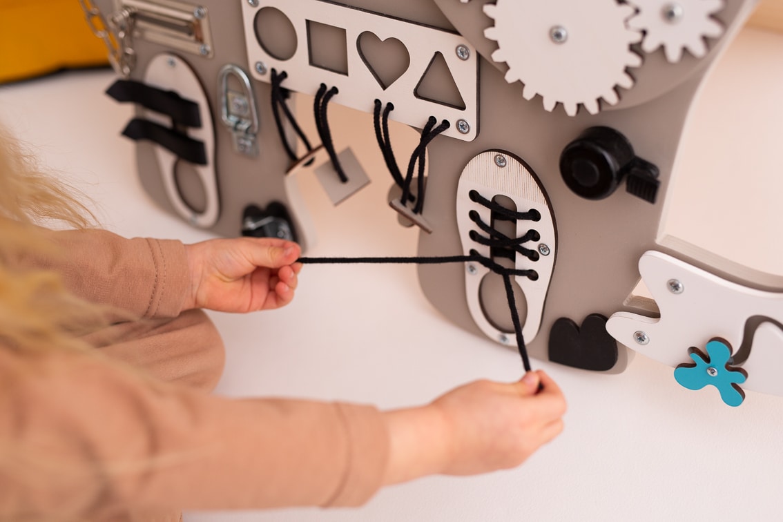 Unsere Aktivitätstafeln werden in Polen hergestellt, wo wir FSC-zertifiziertes Sperrholz und kindersichere Farben auf Wasserbasis verwenden. Jedes Element wird mit großer Sorgfalt geschliffen und zusammengesetzt. Die Liebe zum Detail ist immer unsere oberste Priorität.