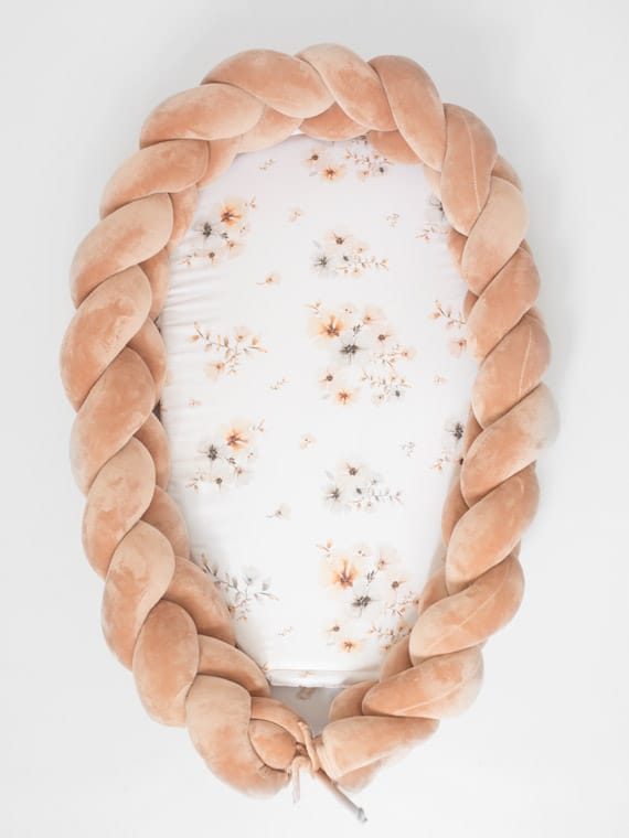 Flettet Babynest 2-i-1 – Boho Flowers Peach