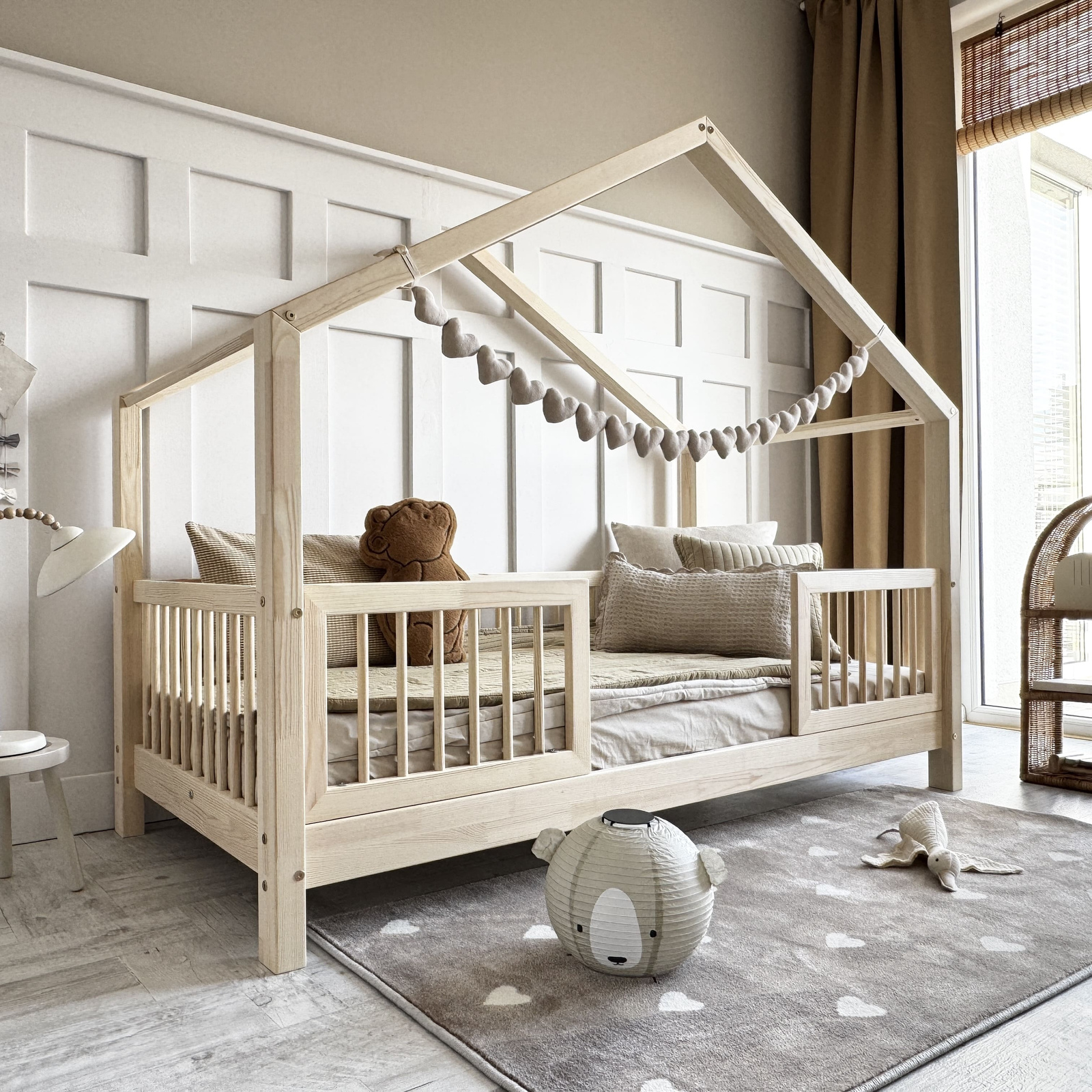 Sengens afrundede kanter, naturlige materialer og stabile konstruktion gør den til et oplagt valg for forældre, der vægter sikkerhed, æstetik og lang holdbarhed.