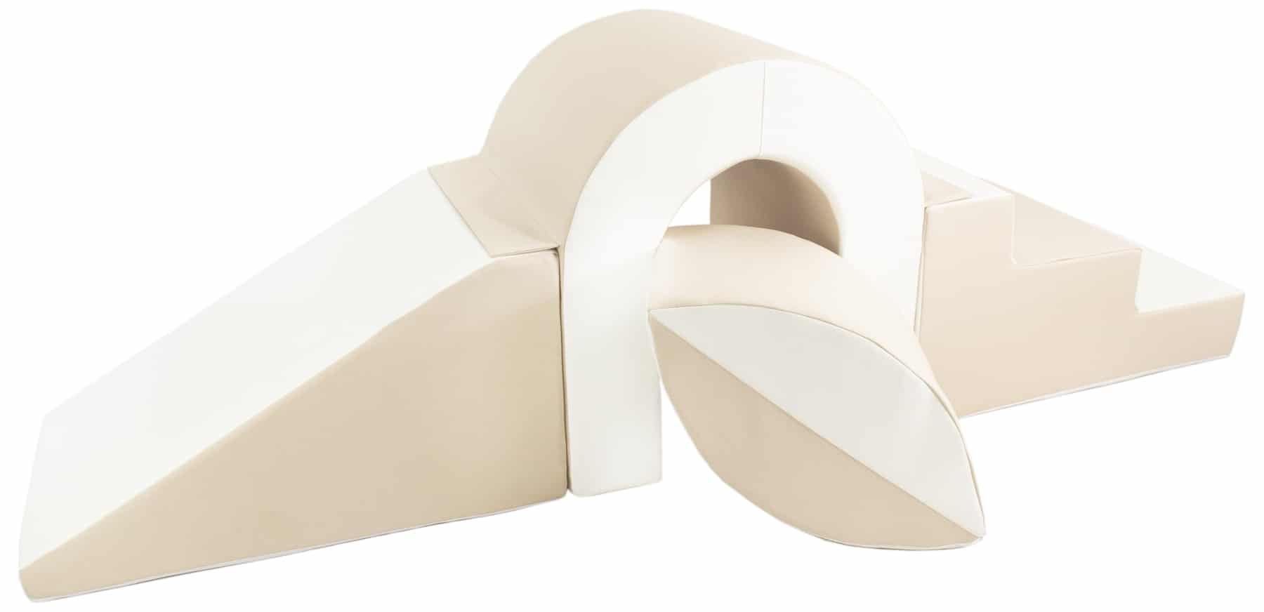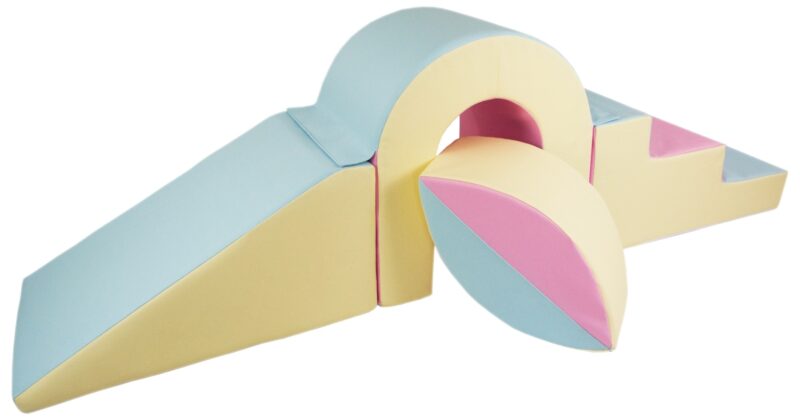 - Das Brückenset besteht aus vier bunten Schaumstoffblöcken.