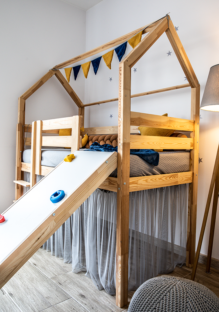 Den höga sängen Joel är perfekt för barn över 6 år som älskar att ha en säng som kombinerar både vila och lek i en vacker och funktionell möbel.