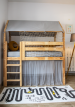 Den höga sängen "LUCY" är en idealisk lösning för att skapa mer utrymme för lek och mys i barnkammaren.