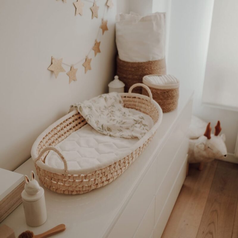 Med hjälp av en madrass kan skötbordet också fungera som en mosskorg under ditt barns första månader (alltid under föräldrars uppsikt). Den lätta designen gör den enkel att flytta och placera där du behöver den.
